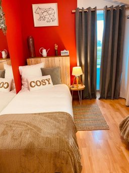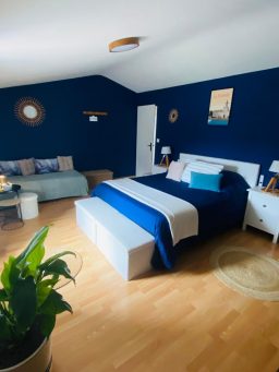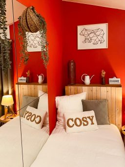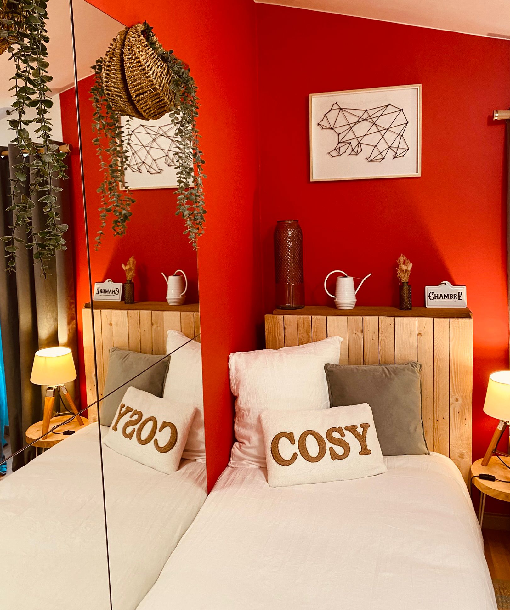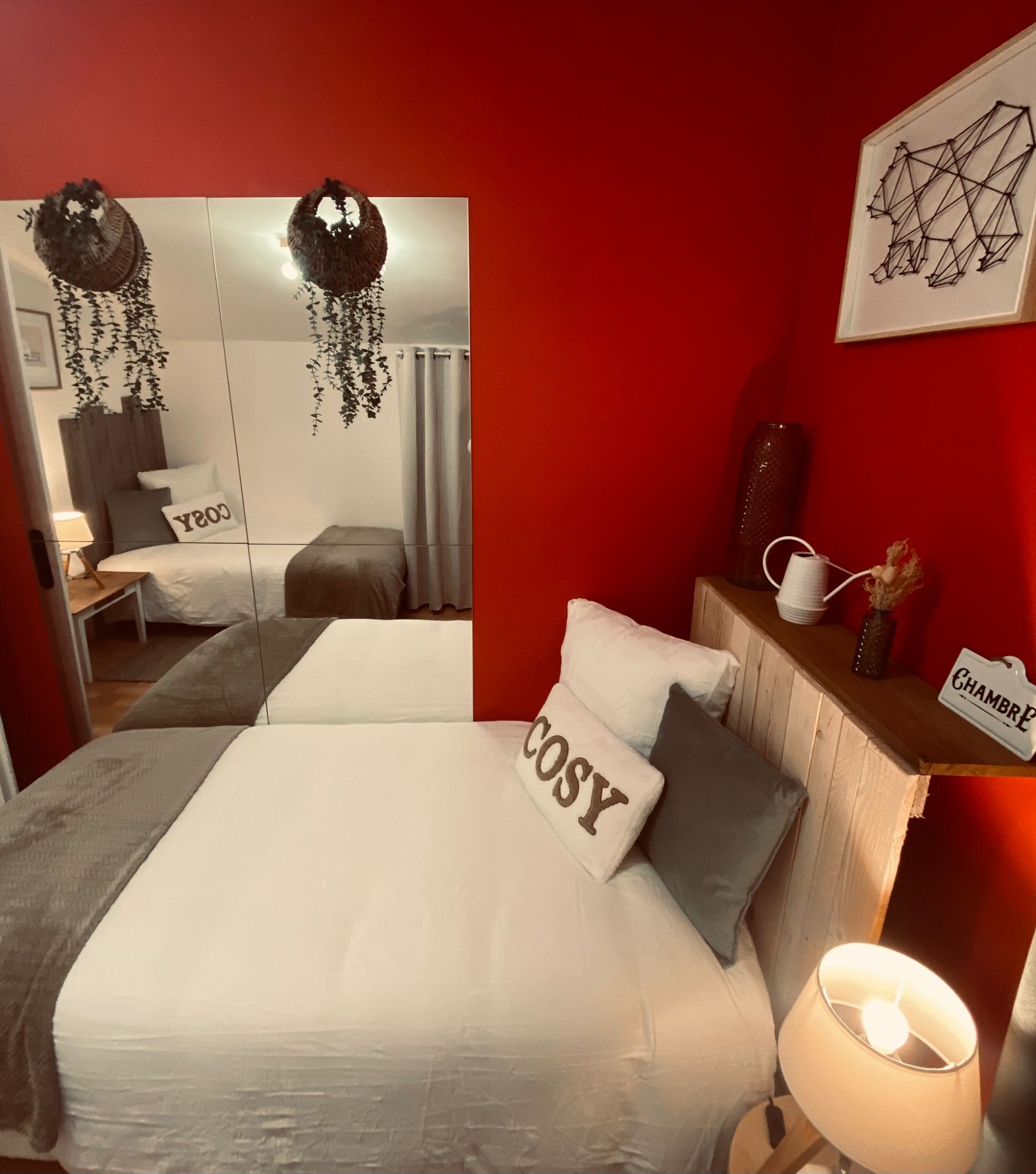 Cette chambre double offre un espace chaleureux et confortable, idéal pour accueillir deux enfants ou deux adultes supplémentaires dans un esprit de convivialité et de sérénité.