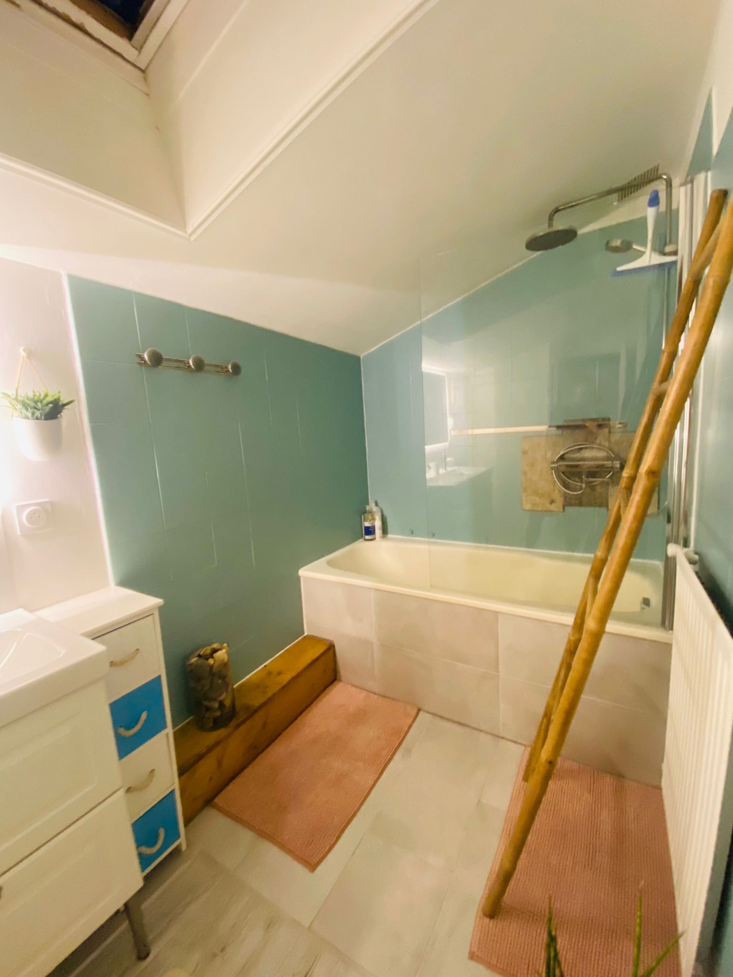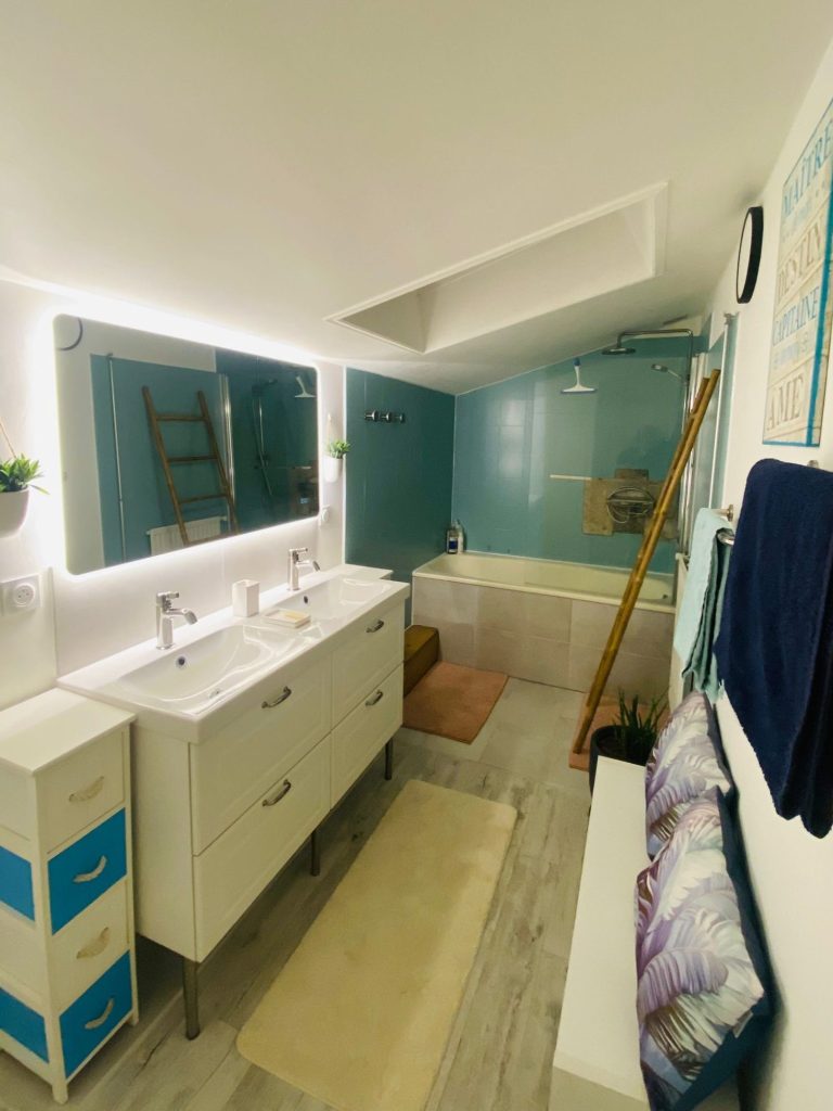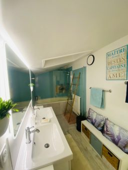 Spacieuse avec ses 11 m², la salle de bain a été pensée comme un véritable espace de détente et de bien-être.