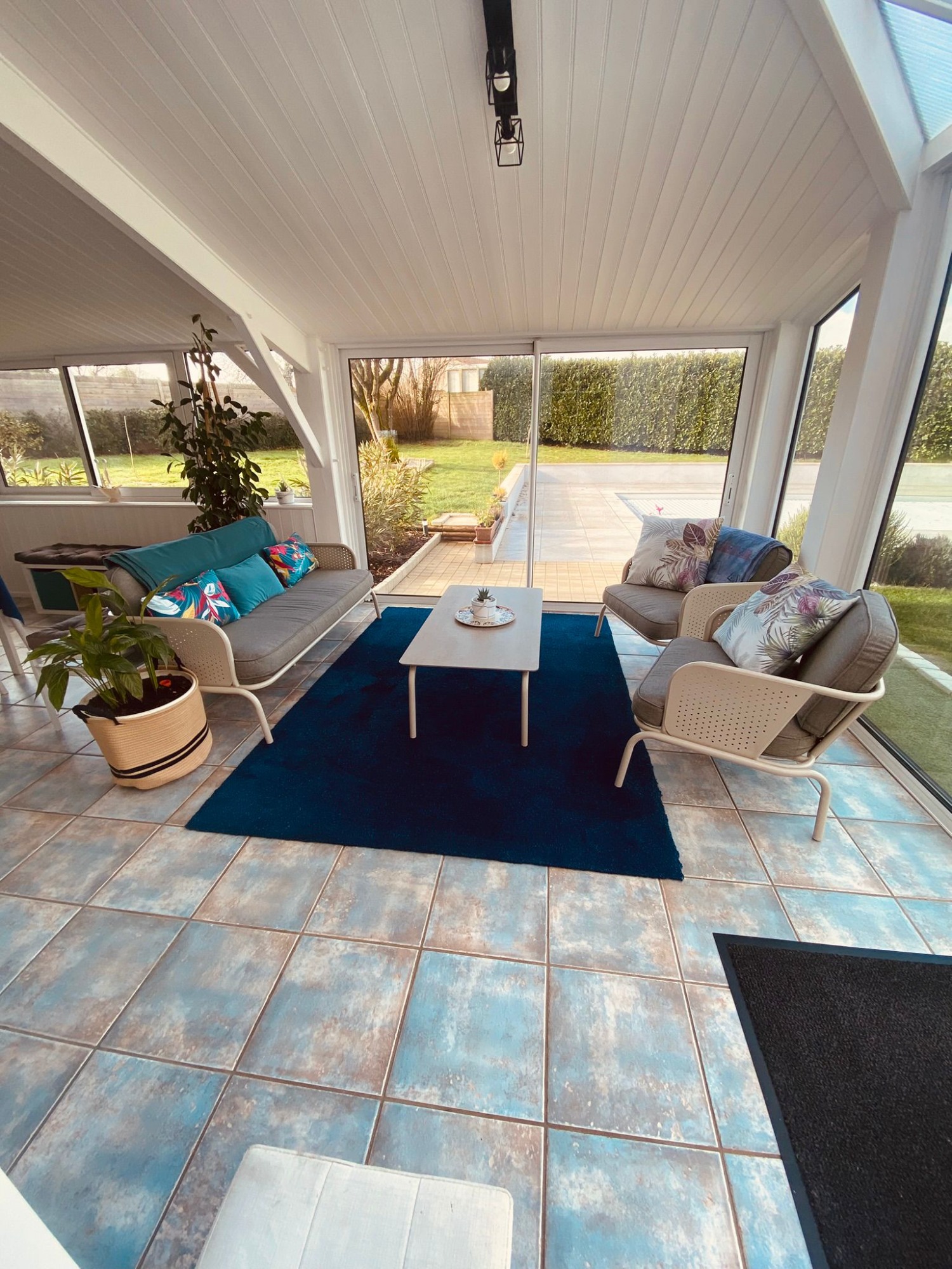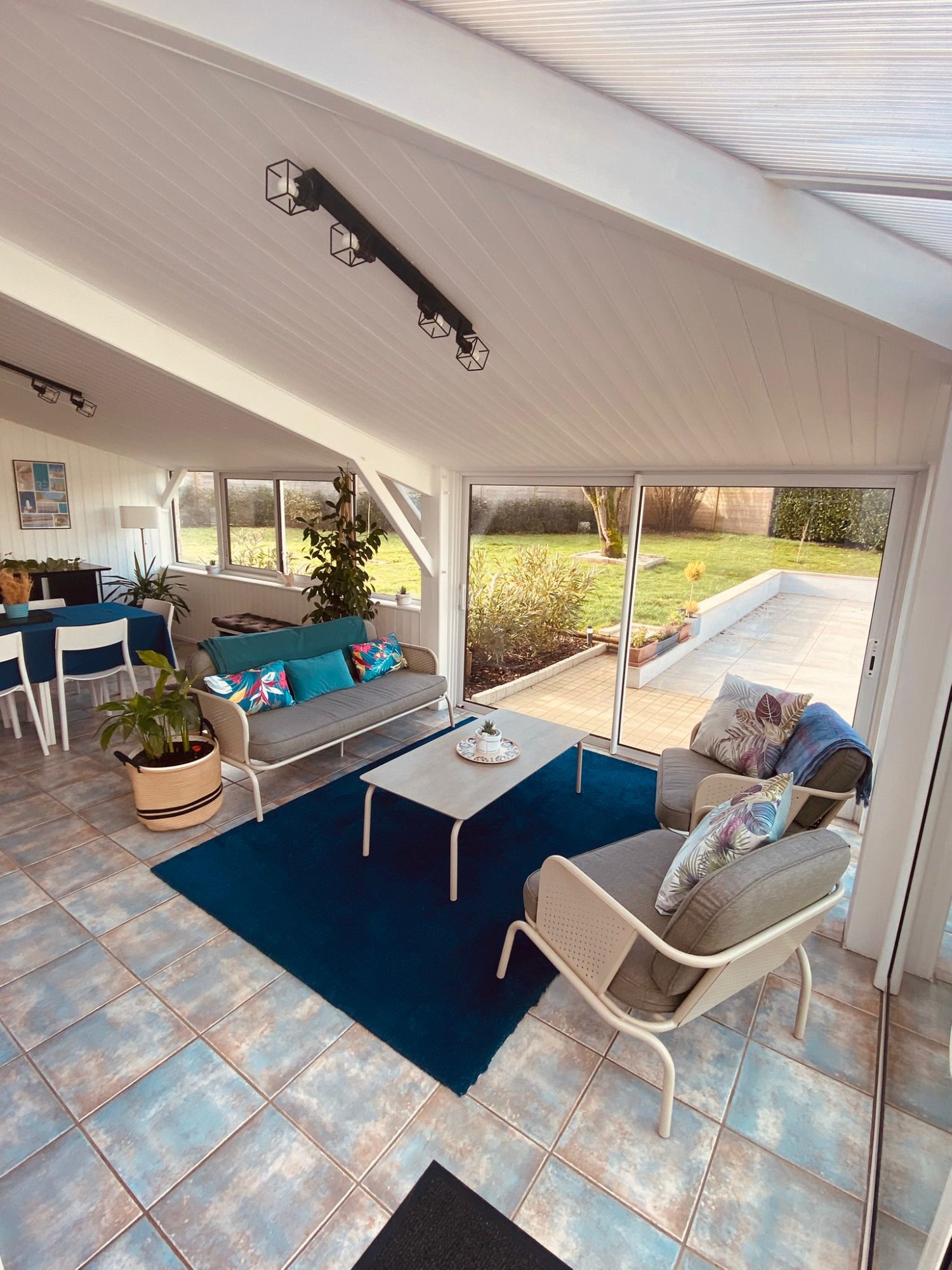 Véritable transition entre la maison et le jardin, la véranda prolonge naturellement la pièce de vie et ouvre la perspective sur l’extérieur.