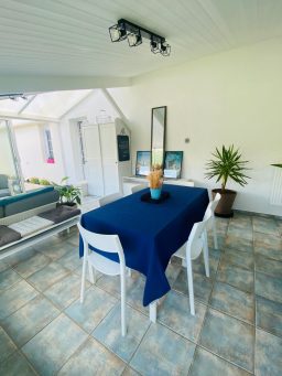 L’espace salle à manger prolonge naturellement le salon et permet de partager des repas conviviaux autour d’une grande table, dans un cadre élégant et ouvert.