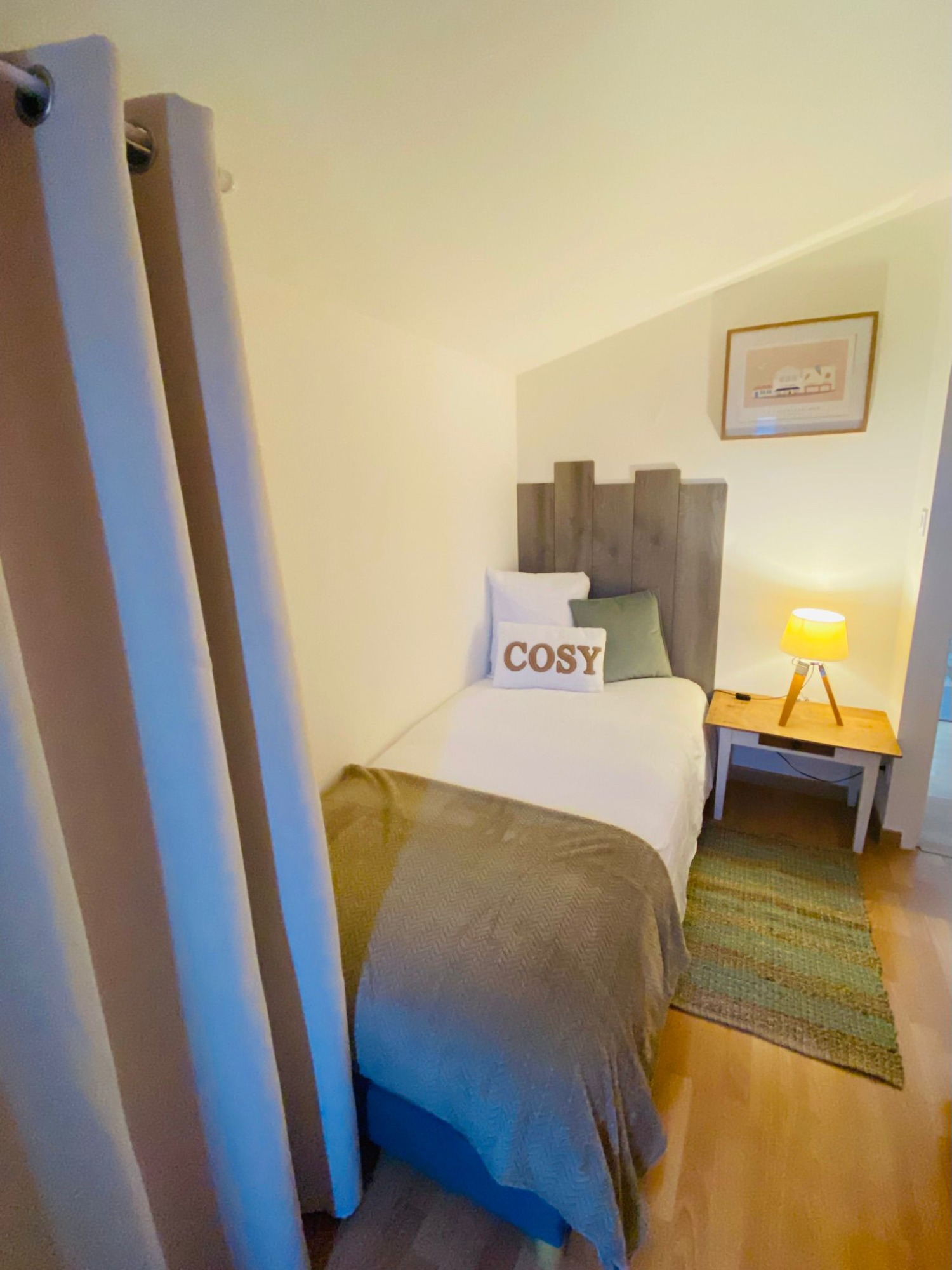 Lumineuse et fonctionnelle, cette chambre conjugue élégance et praticité, dans l’esprit d’une maison où chaque détail participe à la qualité de l’expérience du séjour.
