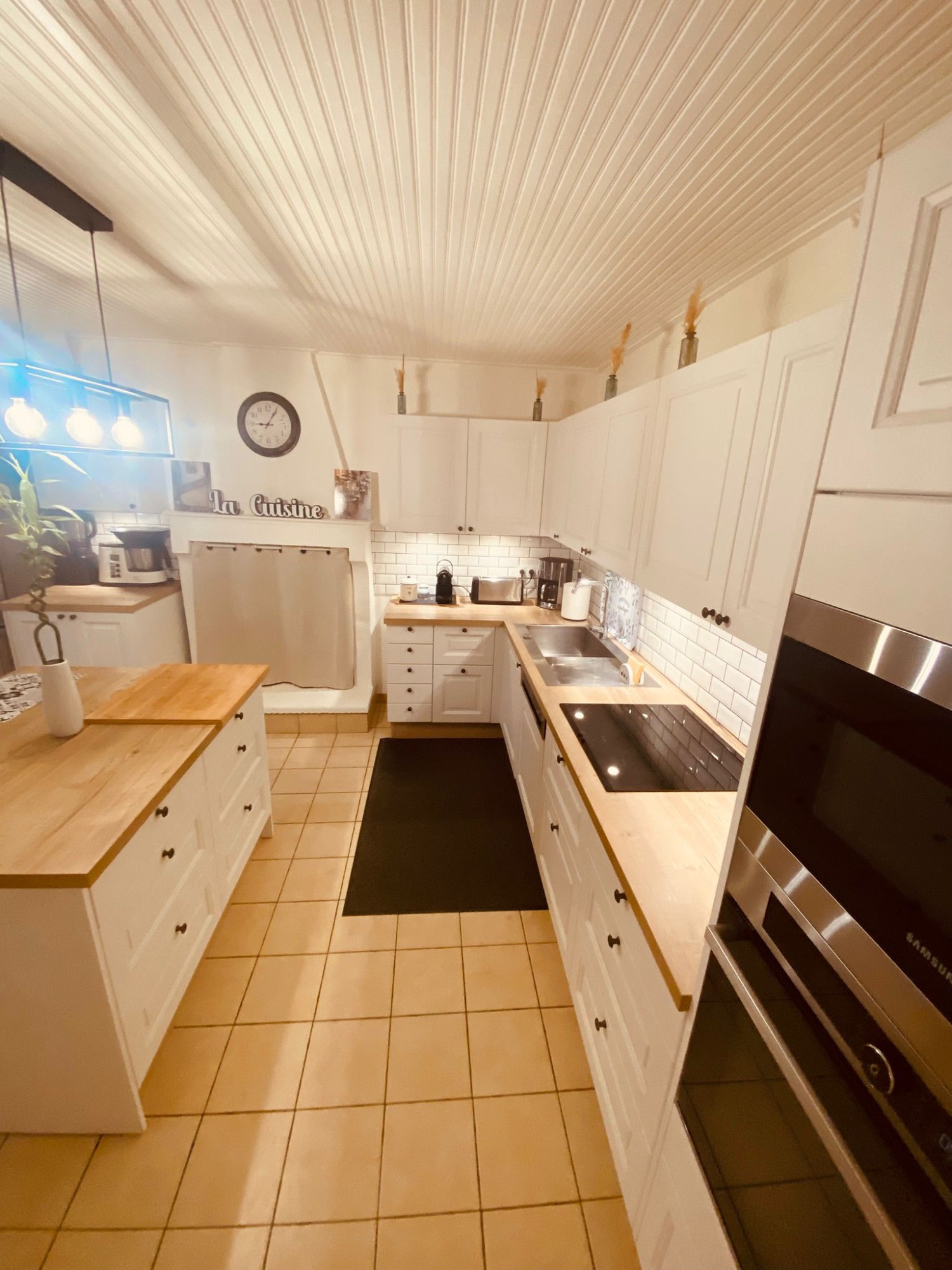 La cuisine aménagée et entièrement équipée allie fonctionnalité et esthétisme. Spacieuse et parfaitement pensée, elle dispose de tout le nécessaire pour cuisiner avec aisance, que ce soit pour un petit-déjeuner ensoleillé ou un dîner plus élaboré.