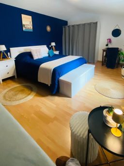 Équipée d’un grand lit double, elle propose une ambiance douce et raffinée, propice à des nuits paisibles. La présence d’un dressing intégré permet d’organiser facilement vos effets personnels et de profiter d’un séjour parfaitement confortable, comme dans une véritable chambre d’hôtes haut de gamme.