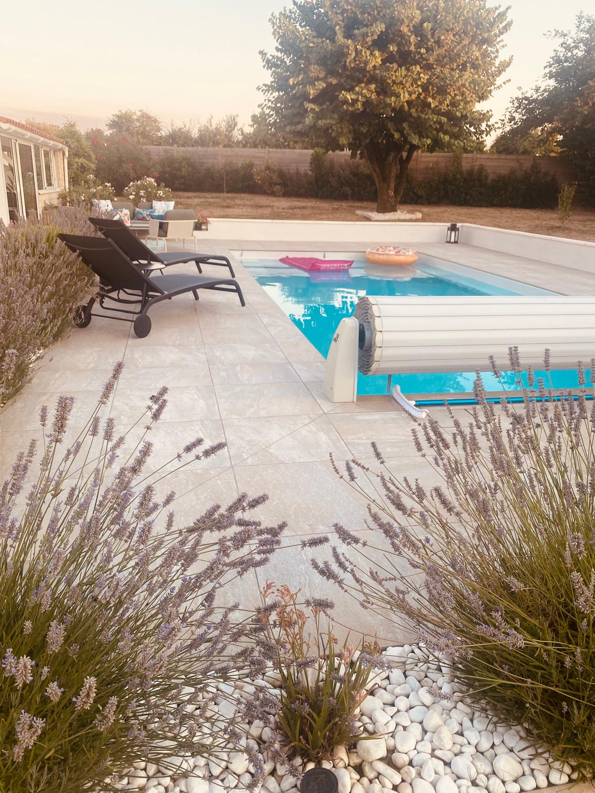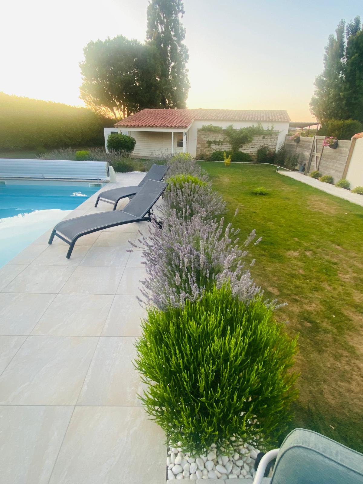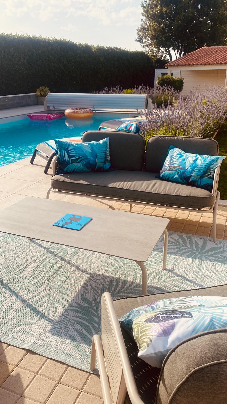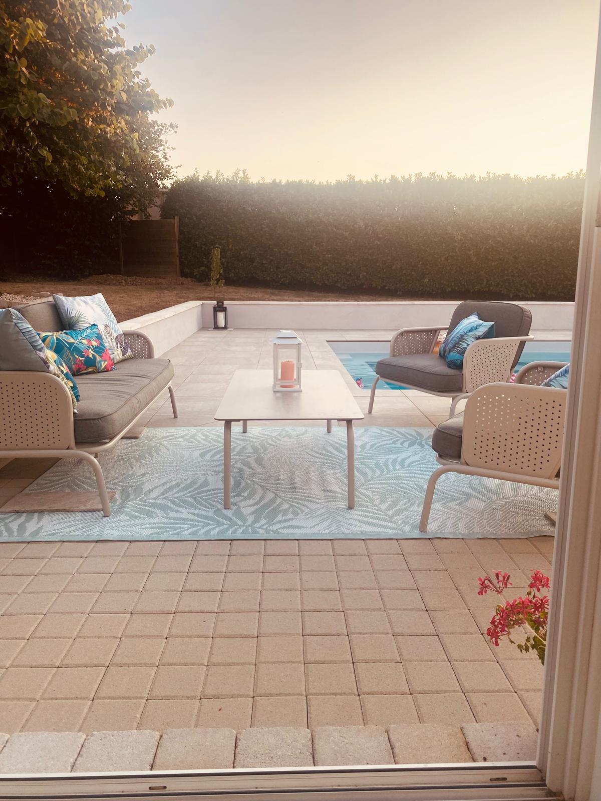 Un vaste salon de jardin complète l’ensemble : confortable et élégant, il invite à prolonger les soirées d’été, à partager un apéritif en plein air ou à se retrouver en toute convivialité dans un cadre harmonieux.